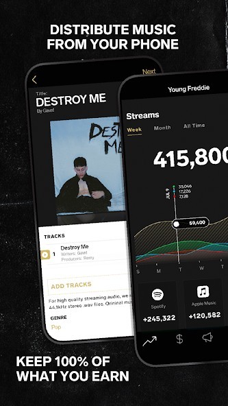 Distributing your music has never been easier. Download the UnitedMasters app to release songs on Spotify, Apple Music, YouTube, Amazon Music, TikTok and every other major music streaming service in minutes.Buy and sell beats in our beat exchange, where producers and artists collaborate to make hit records. Browse our selection for the best beats in Hip Hop, R&B, Pop, EDM, and more. Then Dolby-master your tracks for a professional sound without a recording studio.