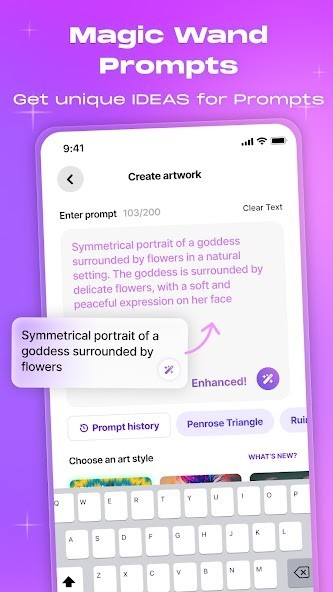Turn words into photos & beautiful digital artworks using the power of AI! All you need to do is enter a prompt, pick an art style - and watch WOMBO Dream - AI Art Generator bring your idea to life in seconds.